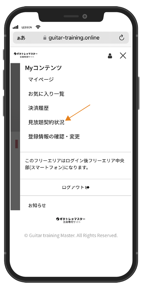 My コンテンツの中から「見放題契約状況」を選択してください。
